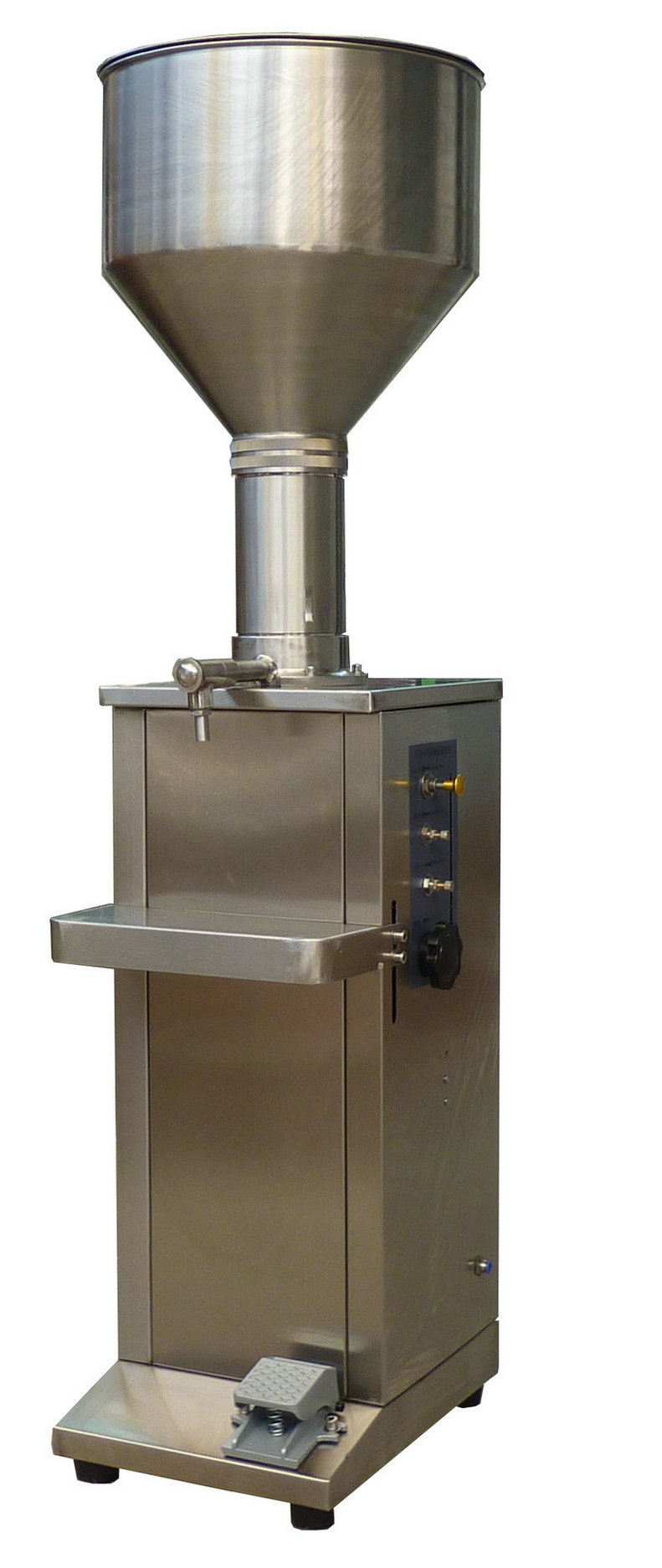 采用活塞式結構,可對液體、膏體等物料進行0-50克定量灌裝。具有膏體液體灌裝一體機功能。